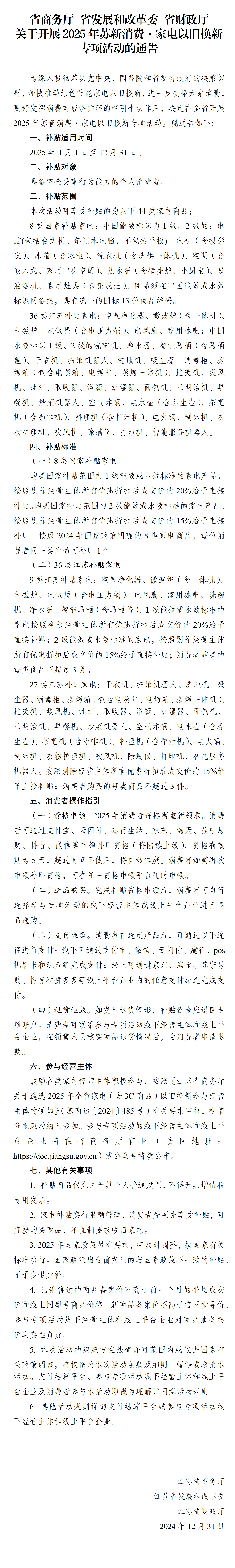 3.对于个人消费者购买没有规定能效或水效标准的补贴家电产品,按照剔除经营主体所有优惠折扣后成交价的15%给予直接补贴。